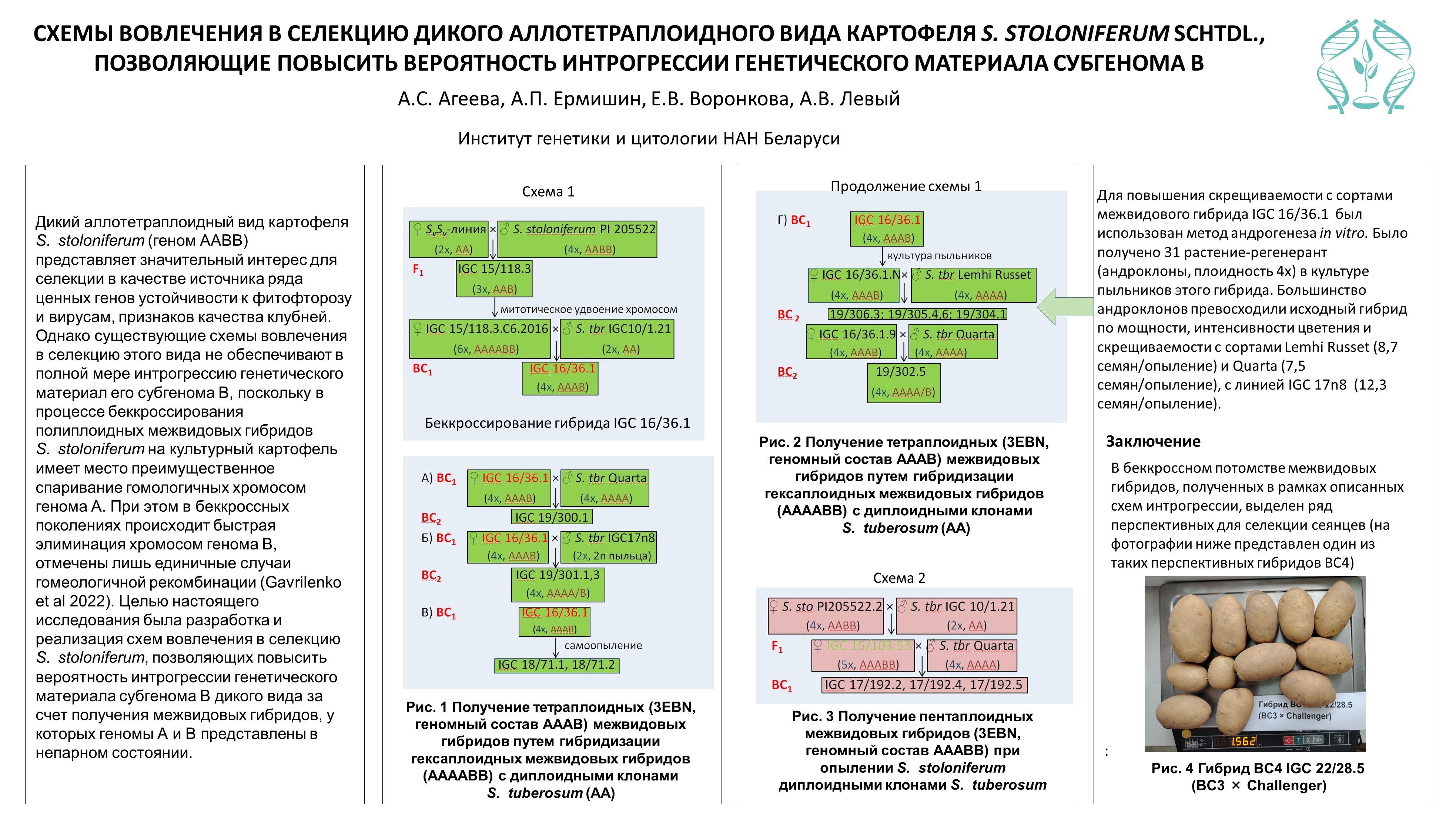 СХЕМЫ ВОВЛЕЧЕНИЯ В СЕЛЕКЦИЮ ДИКОГО АЛЛОТЕТРАПЛОИДНОГО ВИДА КАРТОФЕЛЯ S. STOLONIFERUM SCHTDL, ПОЗВОЛЯЮЩИЕ ПОВЫСИТЬ ВЕРОЯТНОСТЬ ИНТРОГРЕССИИ ГЕНЕТИЧЕСКОГО МАТЕРИАЛА СУБГЕНОМА В (конкурс)