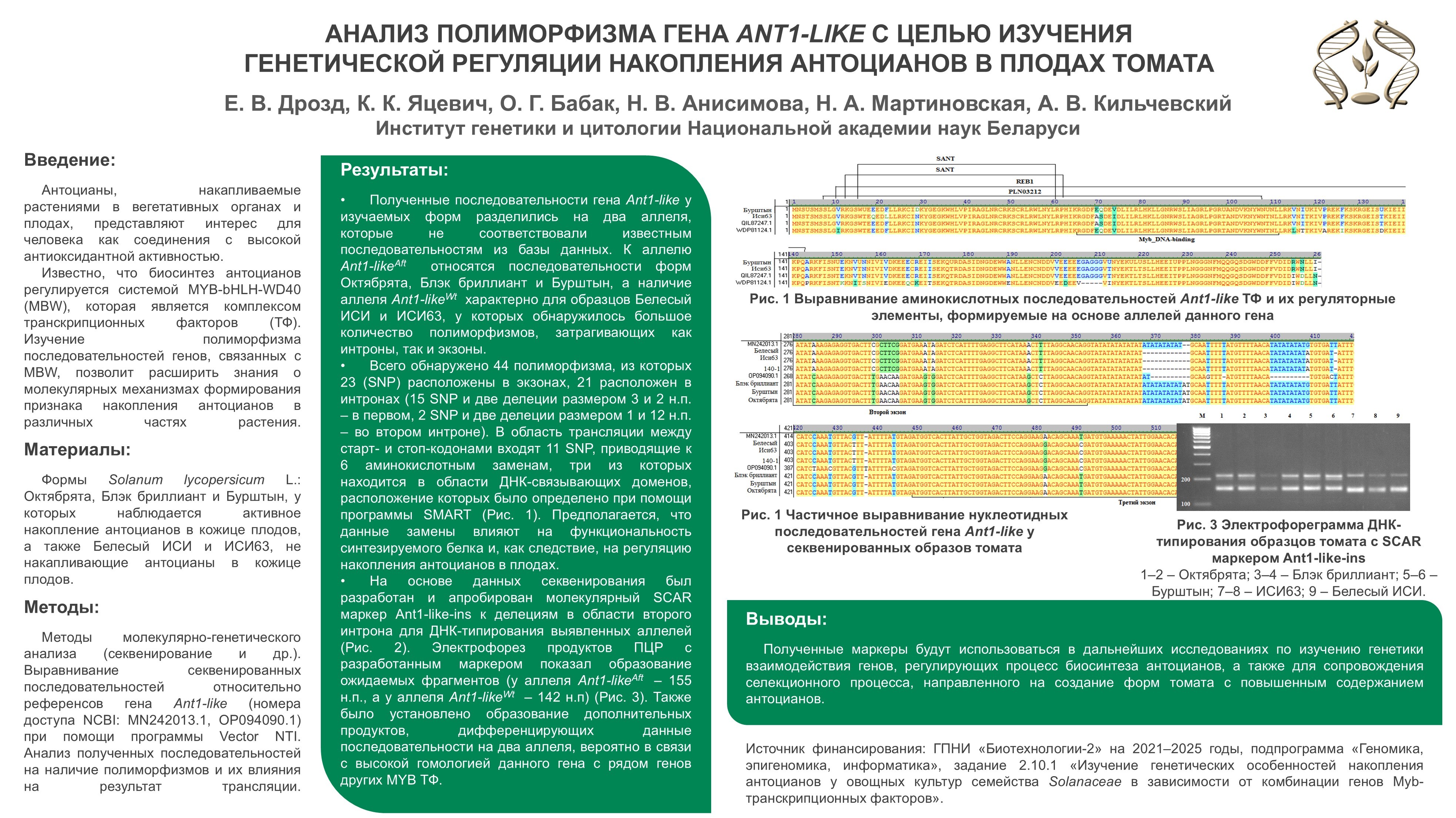 АНАЛИЗ ПОЛИМОРФИЗМА ГЕНА ANT1-LIKE С ЦЕЛЬЮ ИЗУЧЕНИЯ ГЕНЕТИЧЕСКОЙ РЕГУЛЯЦИИ НАКОПЛЕНИЯ АНТОЦИАНОВ В ПЛОДАХ ТОМАТА (конкурс)
