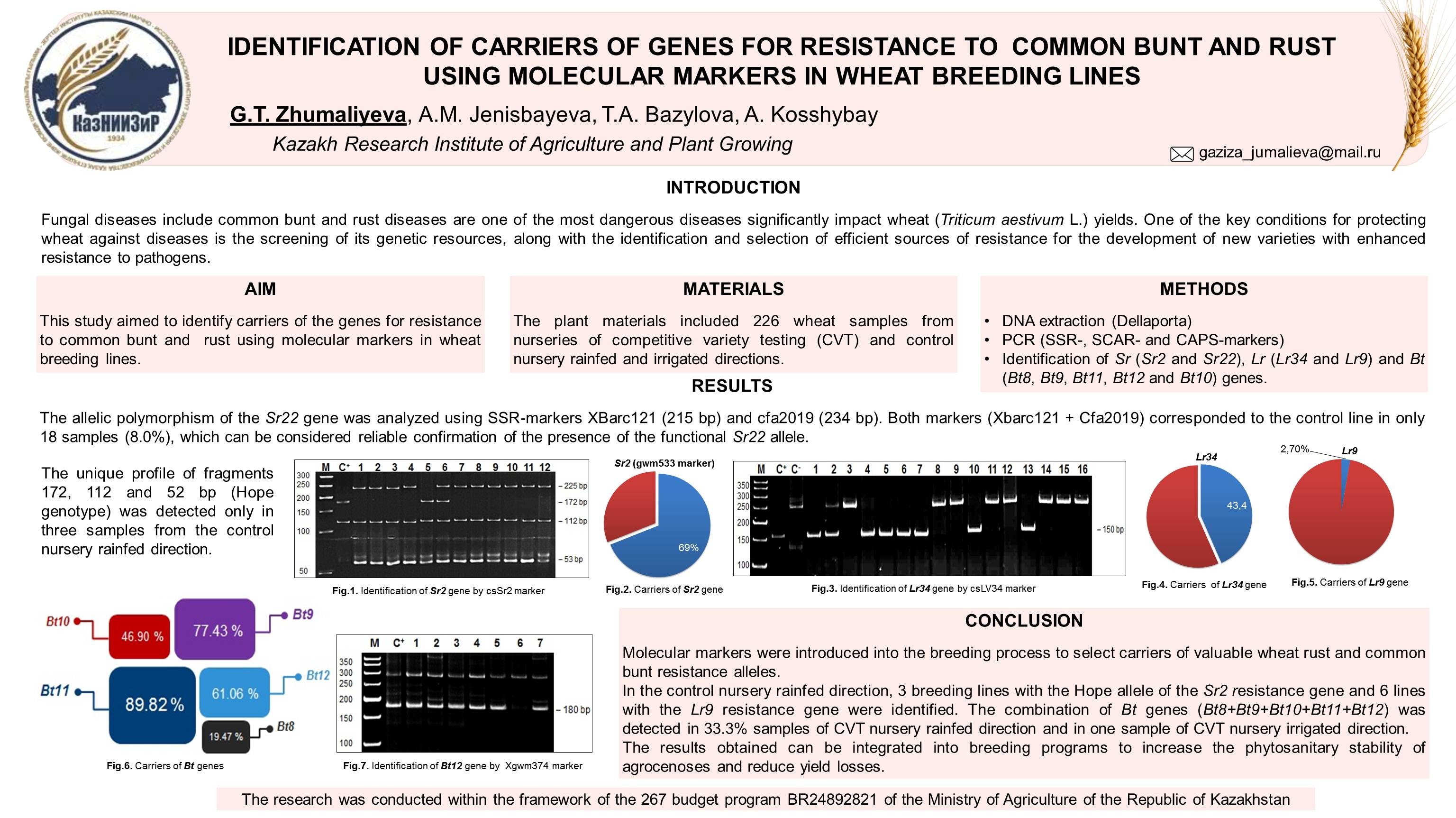 IDENTIFICATION OF CARRIERS OF GENES FOR RESISTANCE TO COMMON BUNT AND RUST USING MOLECULAR MARKERS IN WHEAT BREEDING LINES