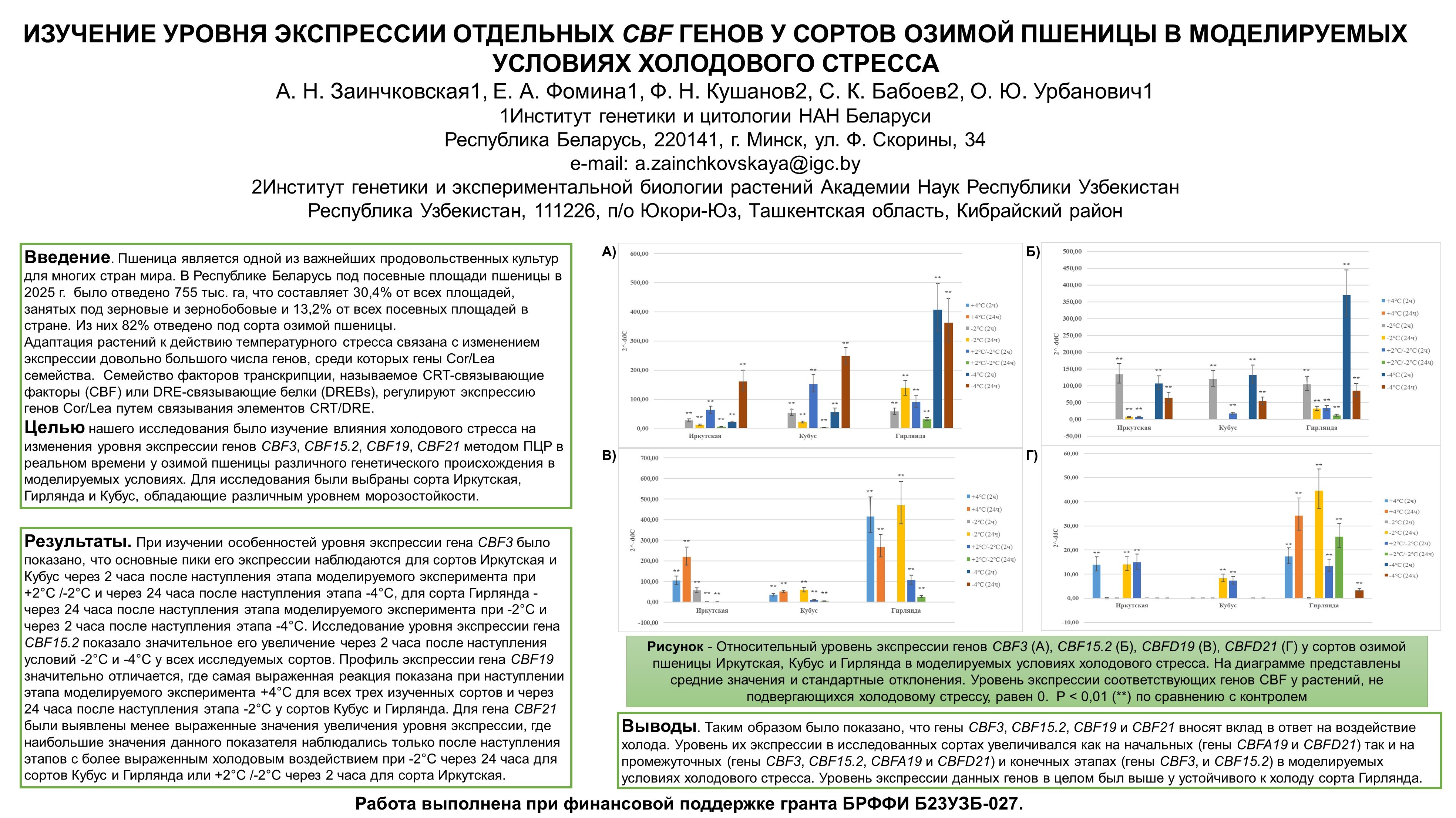 ИЗУЧЕНИЕ УРОВНЯ ЭКСПРЕССИИ ОТДЕЛЬНЫХ CBF ГЕНОВ У СОРТОВ ОЗИМОЙ ПШЕНИЦЫ В МОДЕЛИРУЕМЫХ УСЛОВИЯХ ХОЛОДОВОГО СТРЕССА (конкурс)