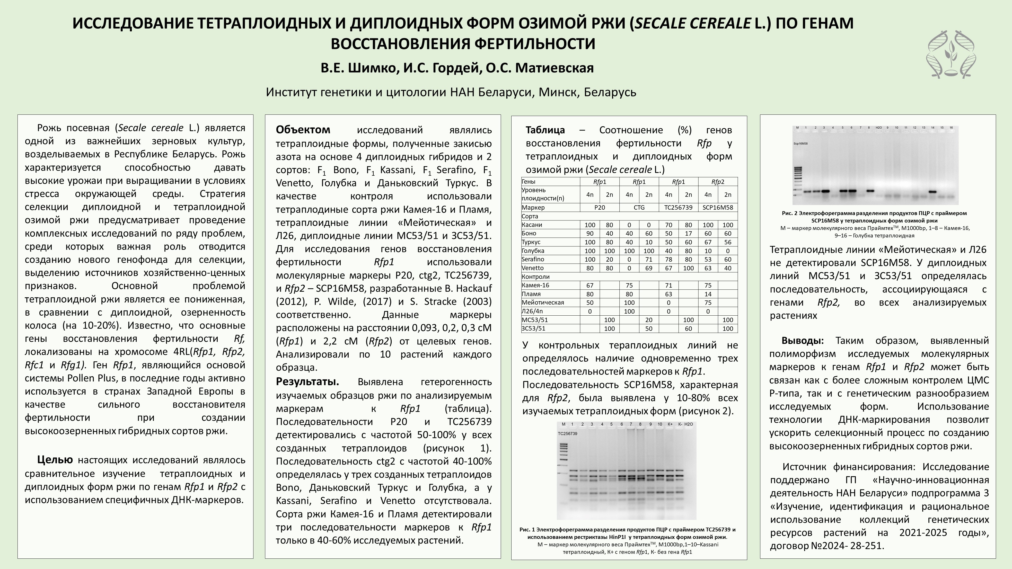 ИССЛЕДОВАНИЕ ТЕТРАПЛОИДНЫХ И ДИПЛОИДНЫХ ФОРМ ОЗИМОЙ РЖИ (SECALE CEREALE L.) ПО ГЕНАМ ВОССТАНОВЛЕНИЯ ФЕРТИЛЬНОСТИ
