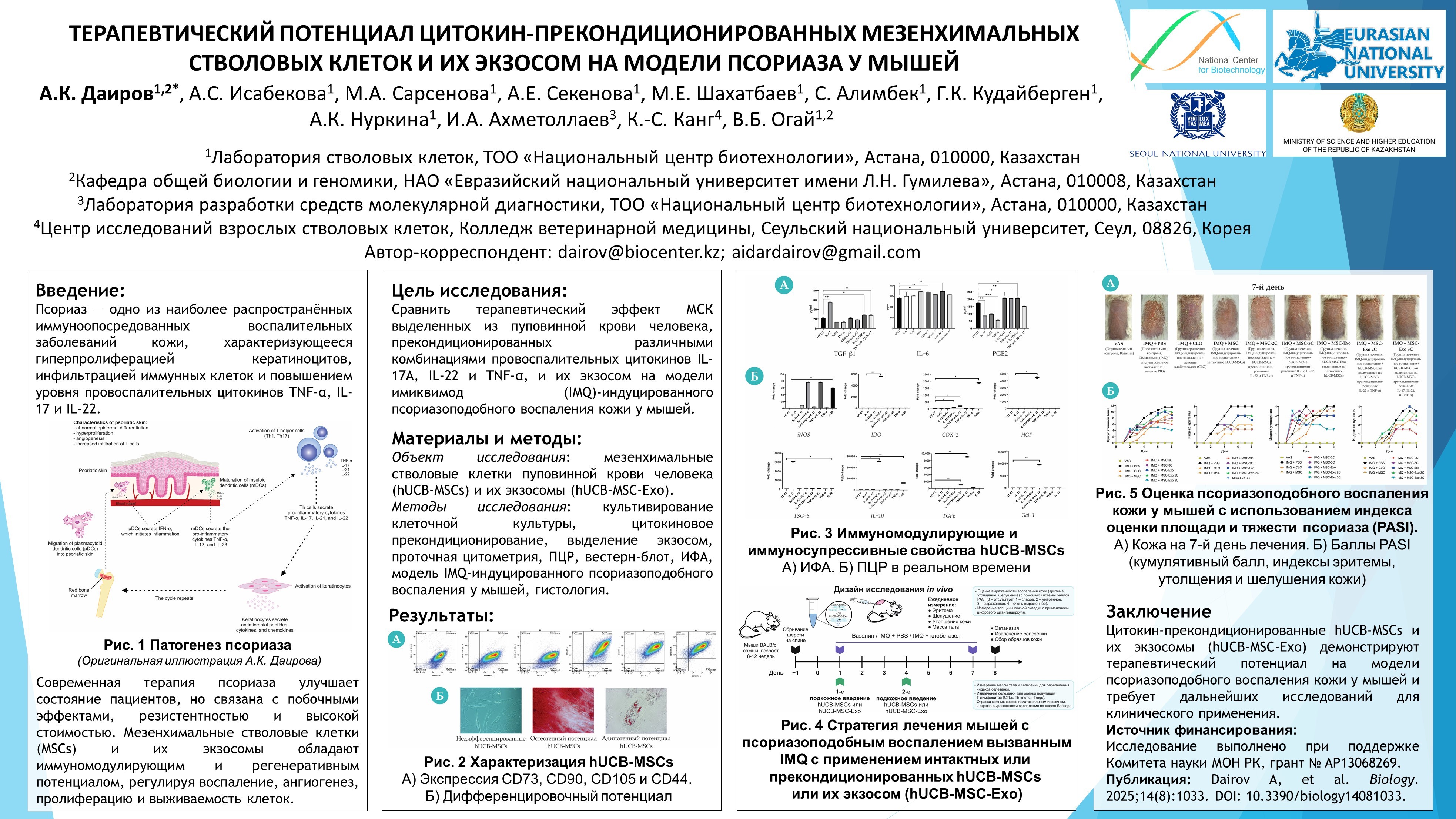 ТЕРАПЕВТИЧЕСКИЙ ПОТЕНЦИАЛ ЦИТОКИН-ПРЕКОНДИЦИОНИРОВАННЫХ МЕЗЕНХИМАЛЬНЫХ СТВОЛОВЫХ КЛЕТОК И ИХ ЭКЗОСОМ НА МОДЕЛИ ПСОРИАЗА У МЫШЕЙ
