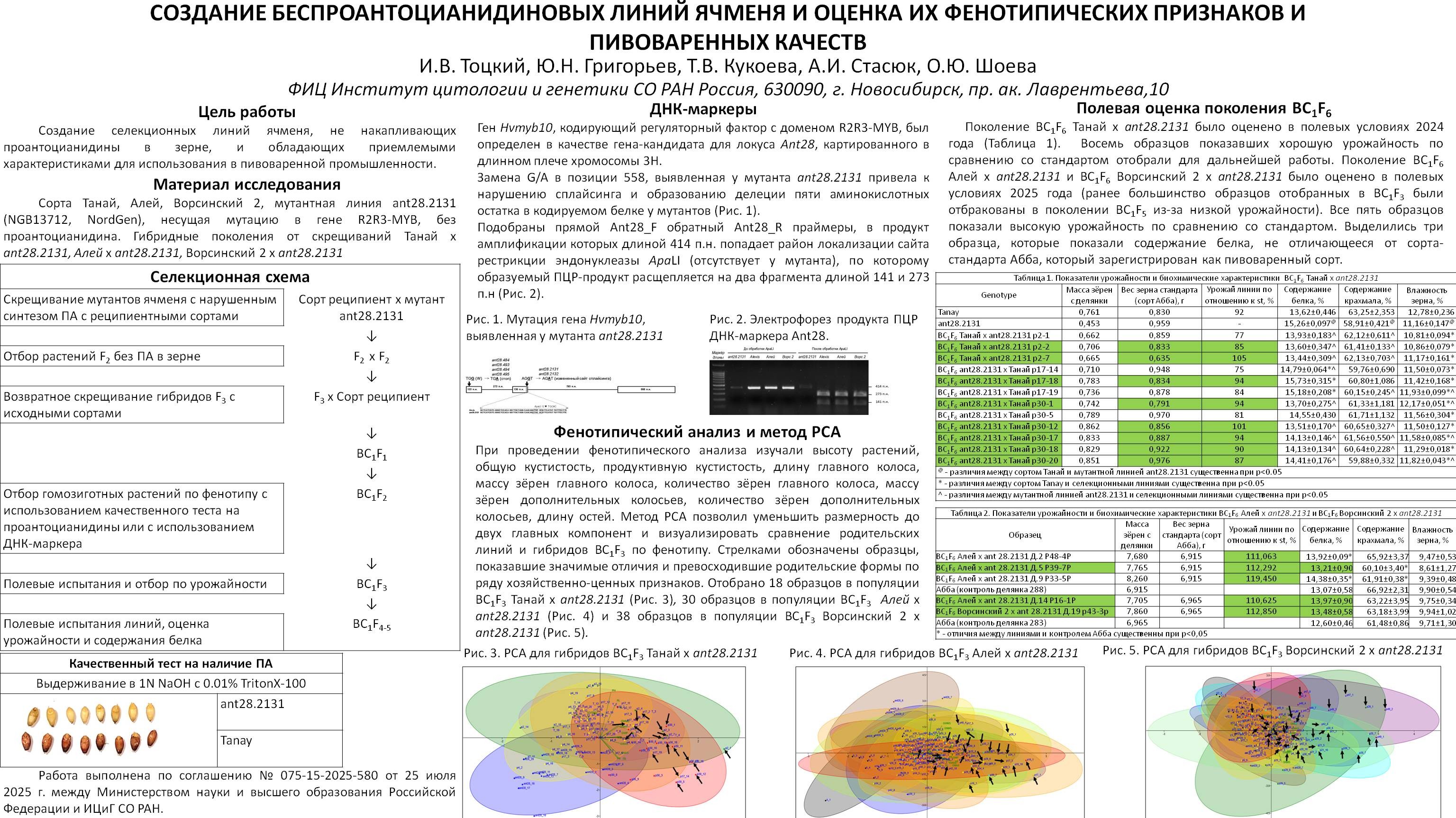 СОЗДАНИЕ БЕСПРОАНТОЦИАНИДИНОВЫХ ЛИНИЙ ЯЧМЕНЯ И ОЦЕНКА ИХ ФЕНОТИПИЧЕСКИХ ПРИЗНАКОВ И ПИВОВАРЕННЫХ КАЧЕСТВ